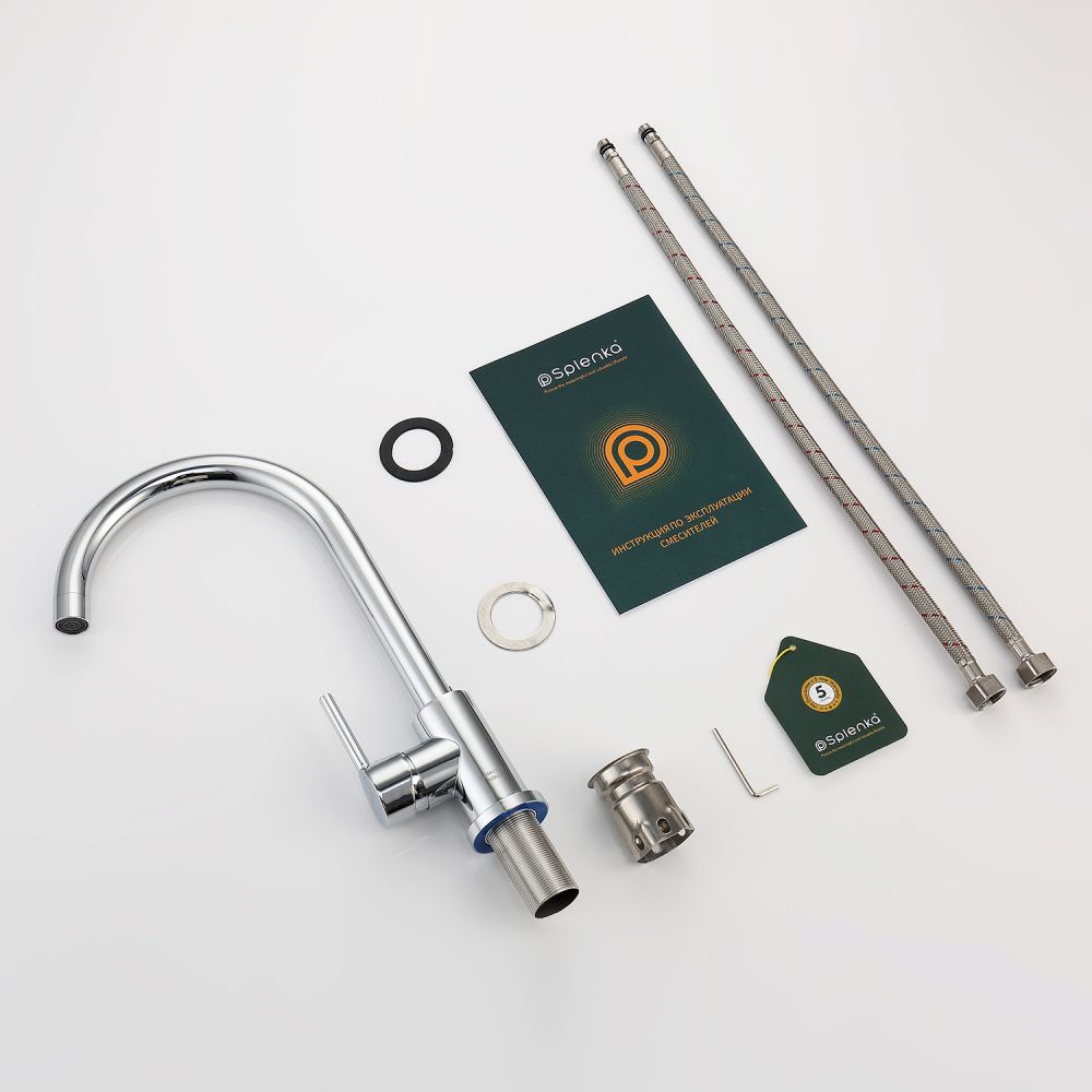 Смеситель для кухни Splenka S201.40. Цвет: хром. Смеситель для кухни сочетает в себе удобную конструкцию, простоту в установке, универсальный современный дизайн и доступную цену за высокое качество.Смеситель превосходно дополнит интерьер любой кухни. В набор входит гибкая подводка размером 1/2". Монтаж на гайку. Тип подводки – гибкий. Внутри данного смесителя находится керамический картридж 35 мм, который смешивает воду для необходимого показателя температуры. Обслуживание одного потребителя. .Без температурных ограничений. Монтаж на одно отверстие. Размеры розетки – 5,3 см. Расположение рычага сбоку