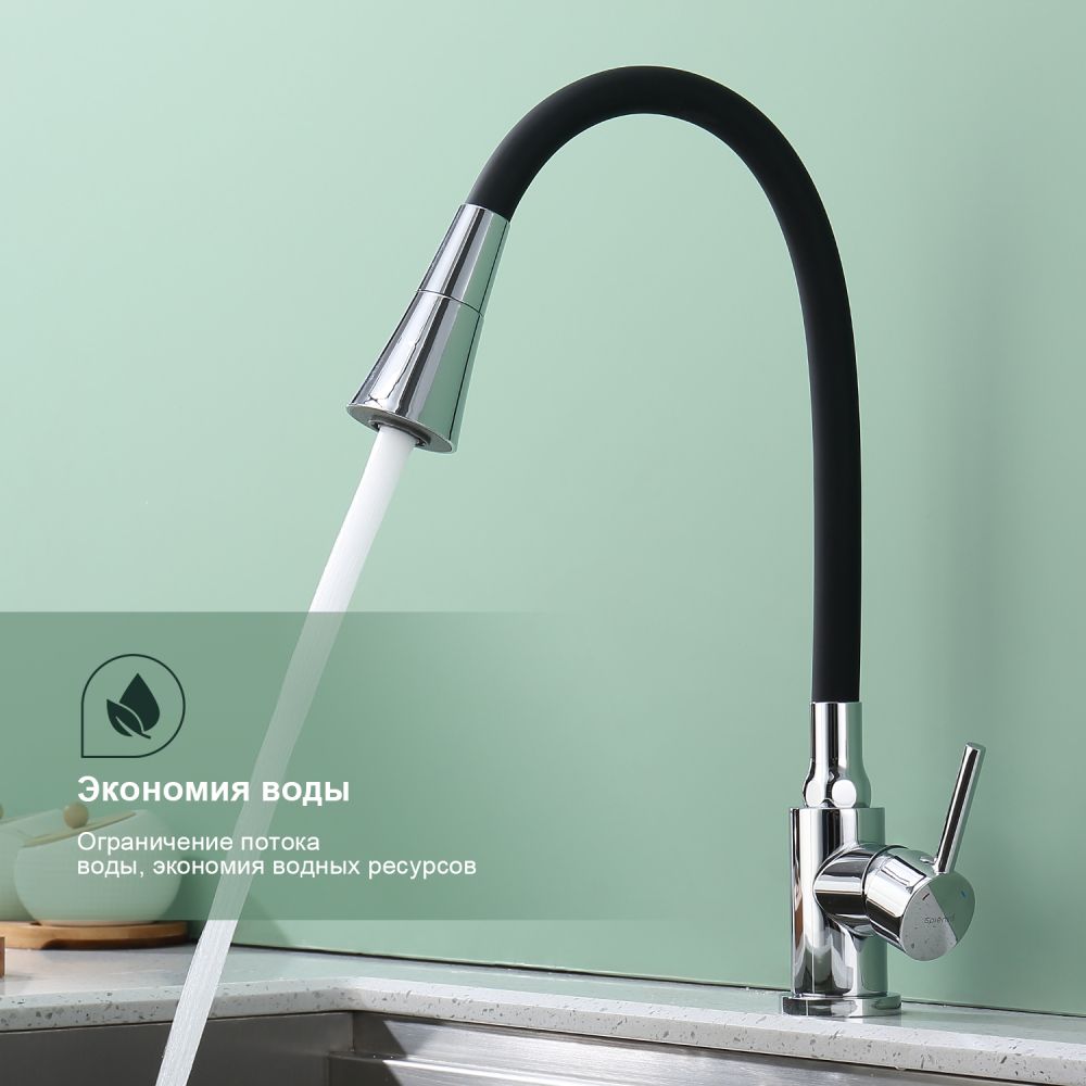 Смеситель для кухни Splenka S201.4306. Цвет: хром. Смеситель для кухни сочетает в себе удобную конструкцию, простоту в установке, универсальный современный дизайн и доступную цену за высокое качество.Смеситель превосходно дополнит интерьер любой кухни. В набор входит гибкая подводка размером 1/2". Монтаж на гайку. Тип подводки – гибкий. Обслуживание одного потребителя. Без температурных ограничений. Монтаж на одно отверстие.