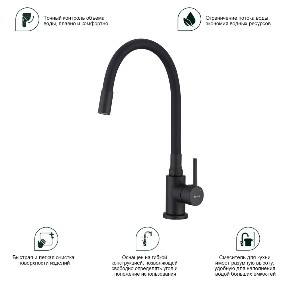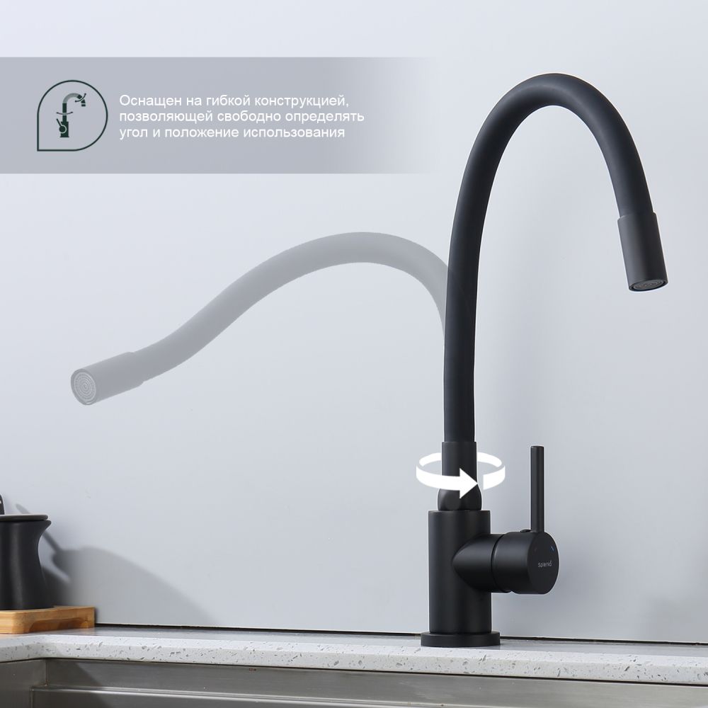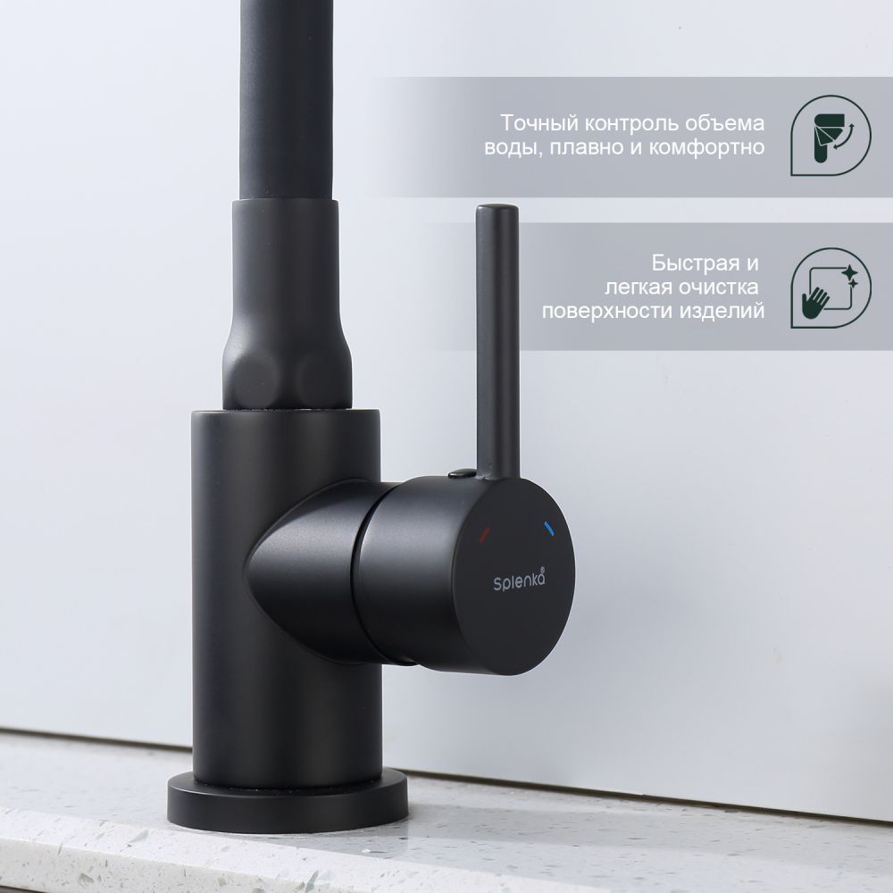 Смеситель для кухни Splenka S201.4406.06. Цвет: черный. Смеситель для кухни сочетает в себе удобную конструкцию, простоту в установке, универсальный современный дизайн и доступную цену за высокое качество.Смеситель превосходно дополнит интерьер любой кухни. В набор входит гибкая подводка размером 1/2". Монтаж на гайку. Тип подводки – гибкий. Обслуживание одного потребителя. Без температурных ограничений. Монтаж на одно отверстие.