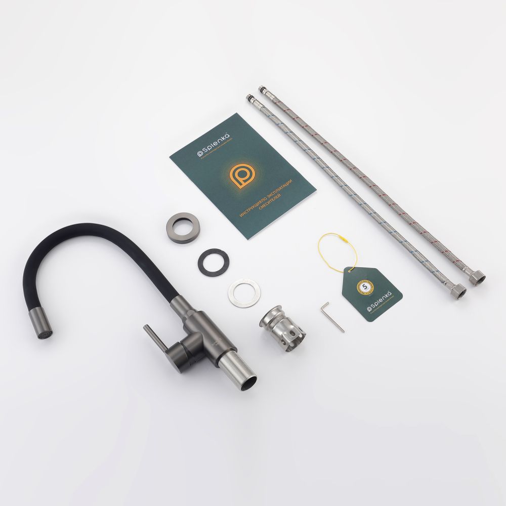 Смеситель для кухни Splenka S201.4406.09. Цвет: графит. Смеситель для кухни сочетает в себе удобную конструкцию, простоту в установке, универсальный современный дизайн и доступную цену за высокое качество.Смеситель превосходно дополнит интерьер любой кухни. В набор входит гибкая подводка размером 1/2". Монтаж на гайку. Тип подводки – гибкий. Обслуживание одного потребителя. Без температурных ограничений. Монтаж на одно отверстие.