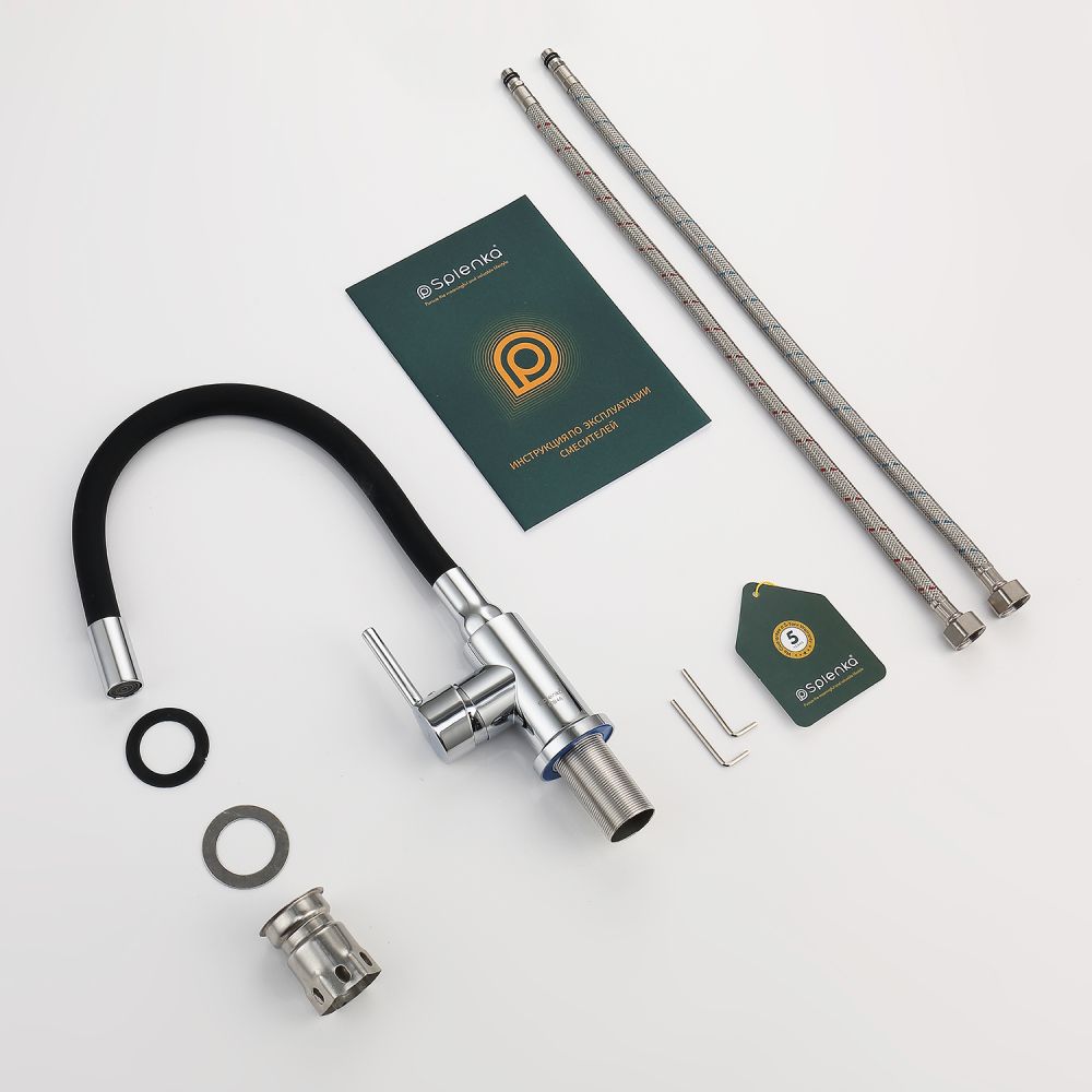 Смеситель для кухни Splenka S201.4406. Цвет: хром. Смеситель для кухни сочетает в себе удобную конструкцию, простоту в установке, универсальный современный дизайн и доступную цену за высокое качество.Смеситель превосходно дополнит интерьер любой кухни. В набор входит гибкая подводка размером 1/2". Монтаж на гайку. Тип подводки – гибкий. Обслуживание одного потребителя. Без температурных ограничений. Монтаж на одно отверстие.