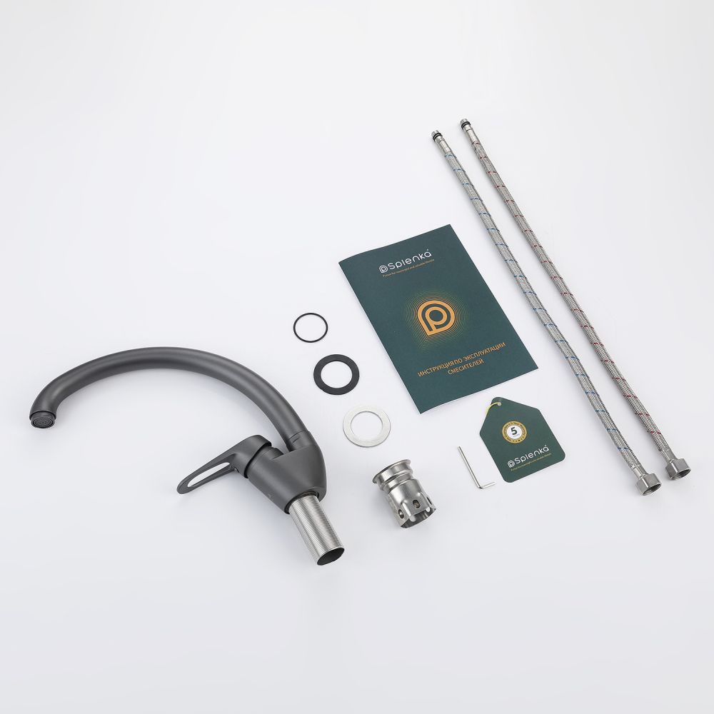 Смеситель для кухни Splenka S202.41.07. Цвет: серый. Кухонные смесители торговой марки SPLENKA широко известны своей надежностью. Строгий контроль качества сопровождает весь цикл производства, включающий материалы и технологии по немецким стандартам: аэратор позволит сэкономить до 30% воды и обеспечит равномерный поток воды. Душевая лейка с двумя функциями, легкое переключение между режимами. Смеситель для кухни имеет разумную высоту, удобную для наполнения водой больших емкостей. Поворотный излив позволяет с большим удобством пользоваться им на кухне. Встроенный аэратор эффективно фильтрует примеси и уменьшает шум от импульсов воды. Гладкая внутренняя стенка обеспечивает мягкий поток воды. Высококлассная технология делает поверхность яркой и блестящей. Подходит к кухонным мойкам практически любых размеров и форм. Быстрый монтаж и простота в обращении позволяют экономить время до 50%. Гарантия на сантехнику от производителя – 5 лет на смеситель и 2 года на покрытие. Комплект включает инструкцию по установке и гарантийный талон.