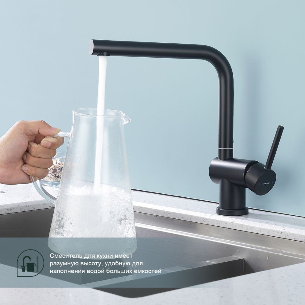 Смеситель для кухни Splenka S205.40.06. Цвет: черный.Кухонные смесители торговой марки SPLENKA широко известны своей надежностью. Строгий контроль качества сопровождает весь цикл производства, включающий материалы и технологии по немецким стандартам: аэратор позволит сэкономить до 30% воды и обеспечит равномерный поток воды. Душевая лейка с двумя функциями, легкое переключение между режимами. Смеситель для кухни имеет разумную высоту, удобную для наполнения водой больших емкостей. Поворотный излив позволяет с большим удобством пользоваться им на кухне. Встроенный аэратор эффективно фильтрует примеси и уменьшает шум от импульсов воды. Гладкая внутренняя стенка обеспечивает мягкий поток воды. Высококлассная технология делает поверхность яркой и блестящей. Подходит к кухонным мойкам практически любых размеров и форм. Быстрый монтаж и простота в обращении позволяют экономить время до 50%. Гарантия на сантехнику от производителя – 5 лет на смеситель и 2 года на покрытие. Комплект включает инструкцию по установке и гарантийный талон.