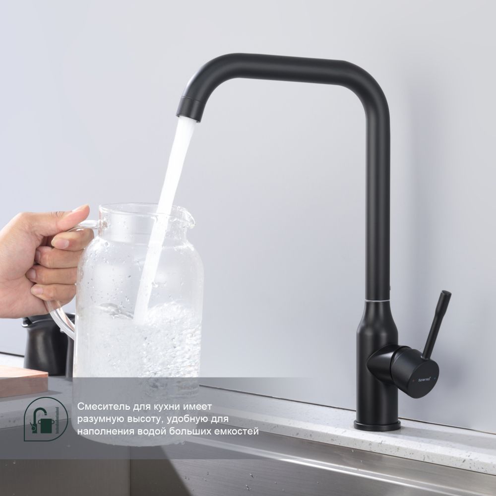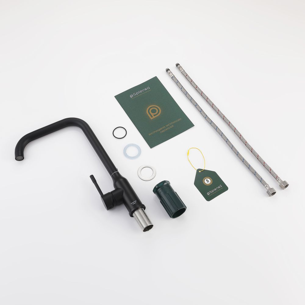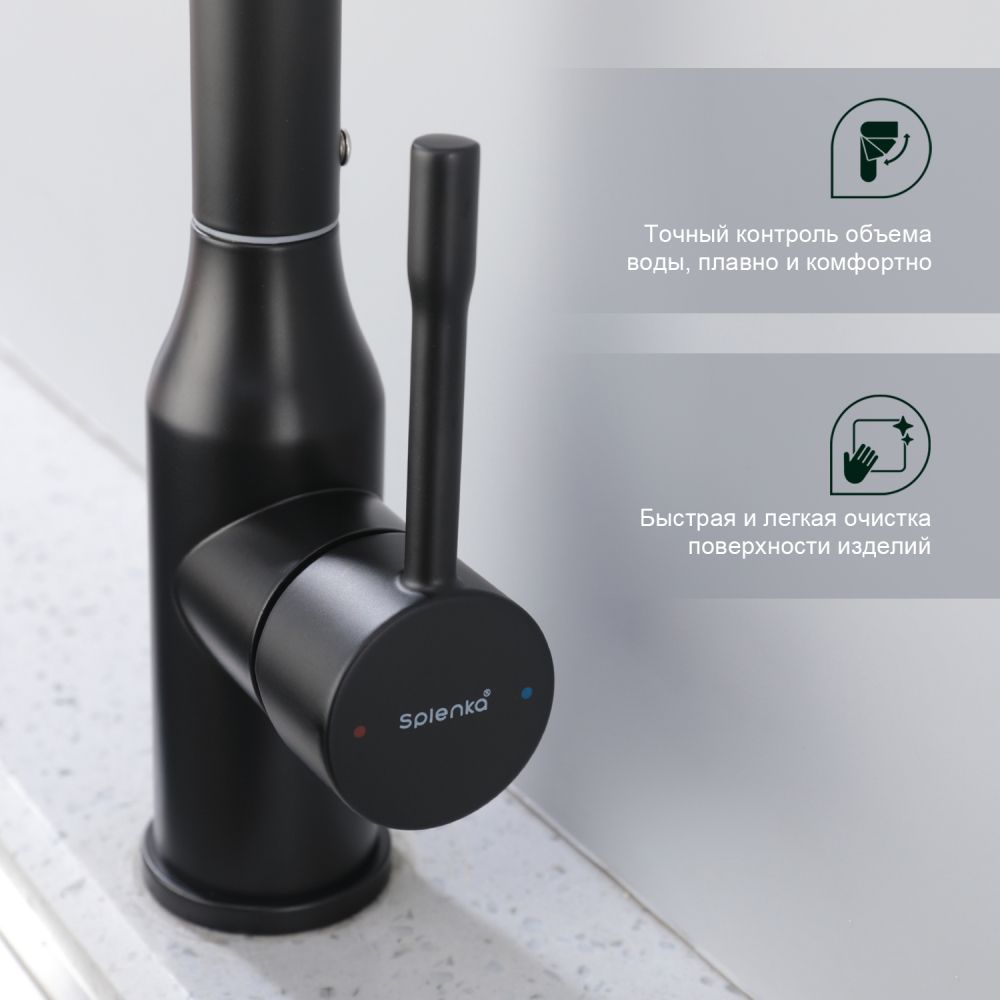 Смеситель для кухни Splenka S206.40.06. Цвет: черный. Кухонные смесители торговой марки SPLENKA широко известны своей надежностью. Строгий контроль качества сопровождает весь цикл производства, включающий материалы и технологии по немецким стандартам: аэратор позволит сэкономить до 30% воды и обеспечит равномерный поток воды. Душевая лейка с двумя функциями, легкое переключение между режимами. Смеситель для кухни имеет разумную высоту, удобную для наполнения водой больших емкостей. Поворотный излив позволяет с большим удобством пользоваться им на кухне. Встроенный аэратор эффективно фильтрует примеси и уменьшает шум от импульсов воды. Гладкая внутренняя стенка обеспечивает мягкий поток воды. Высококлассная технология делает поверхность яркой и блестящей. Подходит к кухонным мойкам практически любых размеров и форм. Быстрый монтаж и простота в обращении позволяют экономить время до 50%. Гарантия на сантехнику от производителя – 5 лет на смеситель и 2 года на покрытие. Комплект включает инструкцию по установке и гарантийный талон.