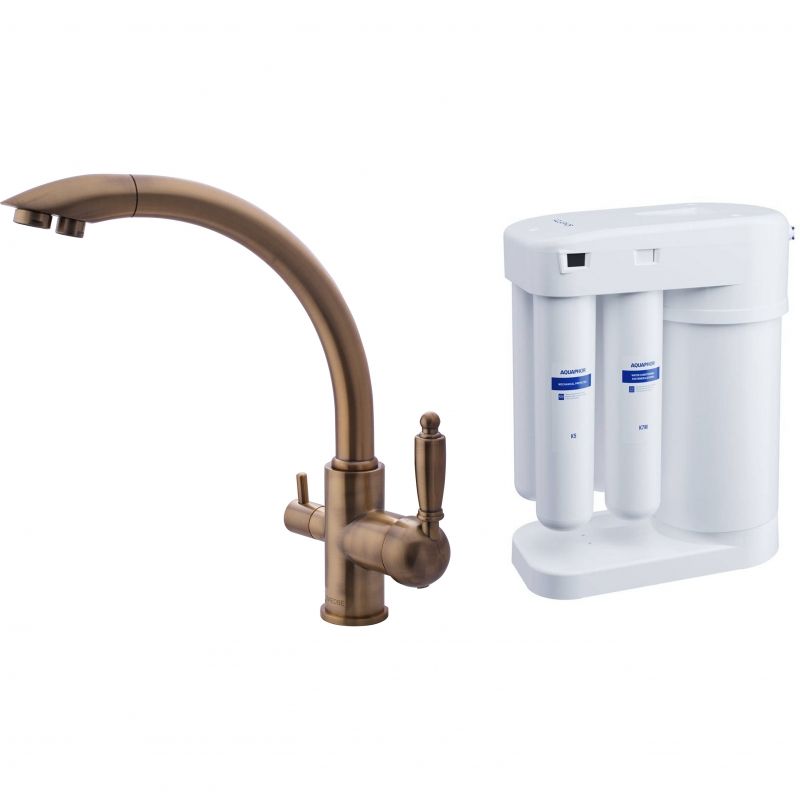 В комплекте: смеситель, комплект фильтров (Аквафор Морион), гибкая подводка, комплект креплений.