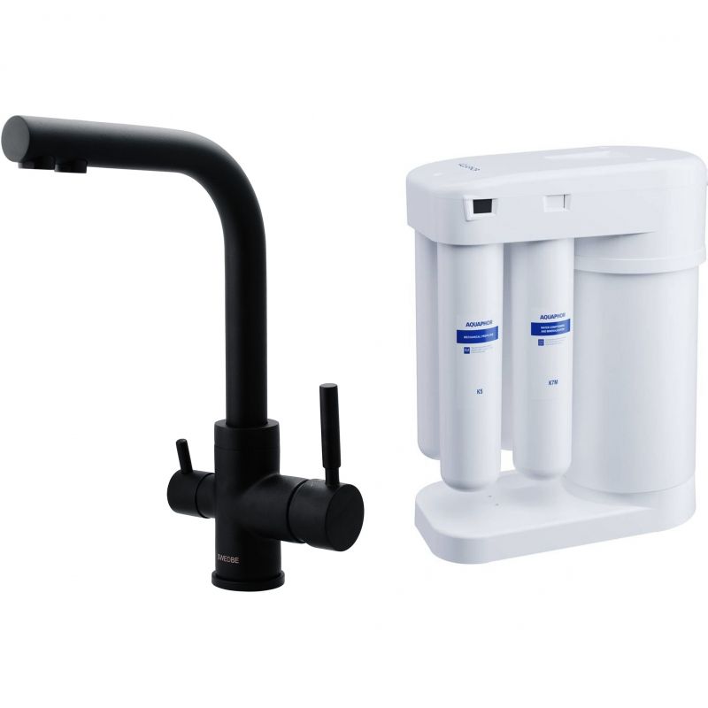 Смеситель для кухни Swedbe Selene Plus 8149M с комплектом фильтров для воды Аквафлор Морион. Смеситель изготовлен по европейским стандартам качества и экологического контроля. Предусмотрена дополнительная защита от протечек: установлены два уплотнительных кольца. Радиус поворота излива 360 градусов обеспечивает свободу действий: освобождает при необходимости пространство мойки и позволяет наполнить емкости водой в удобном для вас месте.