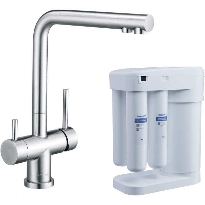 Смеситель для кухни Swedbe Selene Plus K8144M с комплектом фильтров для воды Аквафлор Морион. Смеситель изготовлен по европейским стандартам качества и экологического контроля. Предусмотрена дополнительная защита от протечек: установлены два уплотнительных кольца. Радиус поворота излива 360 градусов обеспечивает свободу действий: освобождает при необходимости пространство мойки и позволяет наполнить емкости водой в удобном для вас месте.