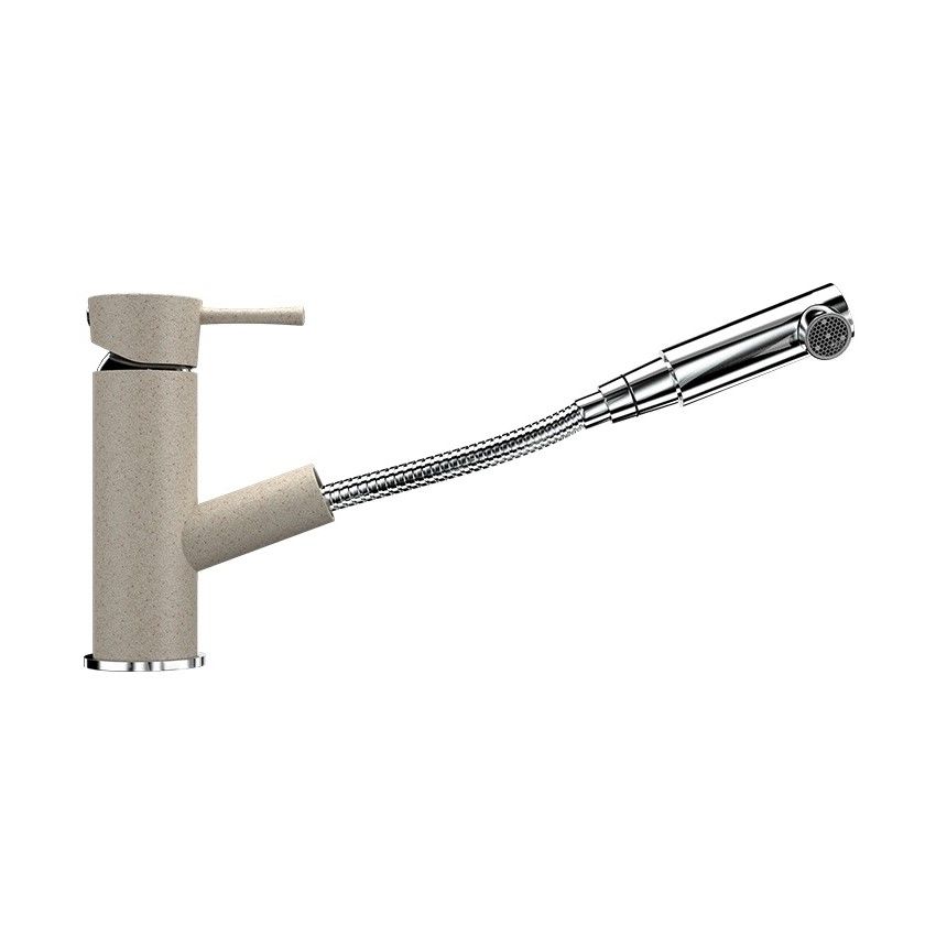 ULGRAN U-009 - кухонный смеситель с низким выдвижным изливом в виде металлической рукоятки (лейки). Конструкция излива с выдвижным механизмом специально разработана для удобства мытья труднодоступных мест и негабаритной посуды (кастрюлей и сковород любой конфигурации), не прибегая к дополнительным ухищрениям. Также это хорошее решение для больших кухонных моек и моек с двумя чашами (двойных). Материал корпуса выполнен из высококачественной латуни, а окрашивание под "искусственный камень" в цвет мойки ULGRAN выполняется на собственном производстве, что позволяет идеально попасть в фирменный цвет ULGRAN. В качестве керамического картриджа используется известный бренд Wanhai диаметром 35 мм с высокой пропускной способностью в 500 тысяч циклов "открывания-закрывания". На подвижные части картриджа Wanhai нанесена специальная невымываемая силиконовая смазка, а керамические пластины изготовлены из 96% оксида алюминия, что, в сочетании с высоким качеством шлифовки обеспечивает долговечность, надежность, плавность хода рукоятки. Смеситель оборудован съемным пластиковым аэратором для экономии воды и поворотным изливом на 360 градусов. В комплектацию входя: керамический картридж Wanhai, гибкая подводка 450 мм, комплект крепежных элементов, металлическая рукоятка (лейка), технический паспорт и гарантийный талон. Заводская гарантия составляет 3 года на материал корпуса, 1 год на комплектующие к смесителю и 1 год на материал покрытия.