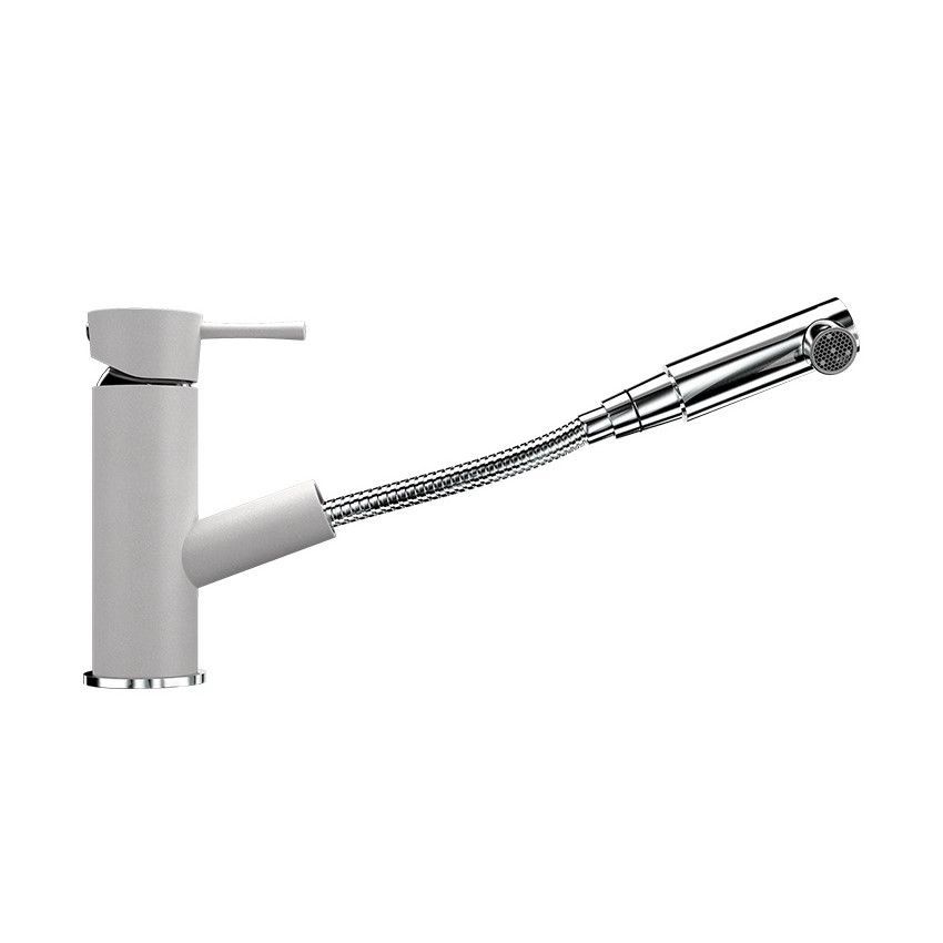 ULGRAN U-009 - кухонный смеситель с низким выдвижным изливом в виде металлической рукоятки (лейки). Конструкция излива с выдвижным механизмом специально разработана для удобства мытья труднодоступных мест и негабаритной посуды (кастрюлей и сковород любой конфигурации), не прибегая к дополнительным ухищрениям. Также это хорошее решение для больших кухонных моек и моек с двумя чашами (двойных). Материал корпуса выполнен из высококачественной латуни, а окрашивание под "искусственный камень" в цвет мойки ULGRAN выполняется на собственном производстве, что позволяет идеально попасть в фирменный цвет ULGRAN. В качестве керамического картриджа используется известный бренд Wanhai диаметром 35 мм с высокой пропускной способностью в 500 тысяч циклов "открывания-закрывания". На подвижные части картриджа Wanhai нанесена специальная невымываемая силиконовая смазка, а керамические пластины изготовлены из 96% оксида алюминия, что, в сочетании с высоким качеством шлифовки обеспечивает долговечность, надежность, плавность хода рукоятки. Смеситель оборудован съемным пластиковым аэратором для экономии воды и поворотным изливом на 360 градусов. В комплектацию входя: керамический картридж Wanhai, гибкая подводка 450 мм, комплект крепежных элементов, металлическая рукоятка (лейка), технический паспорт и гарантийный талон. Заводская гарантия составляет 3 года на материал корпуса, 1 год на комплектующие к смесителю и 1 год на материал покрытия.
