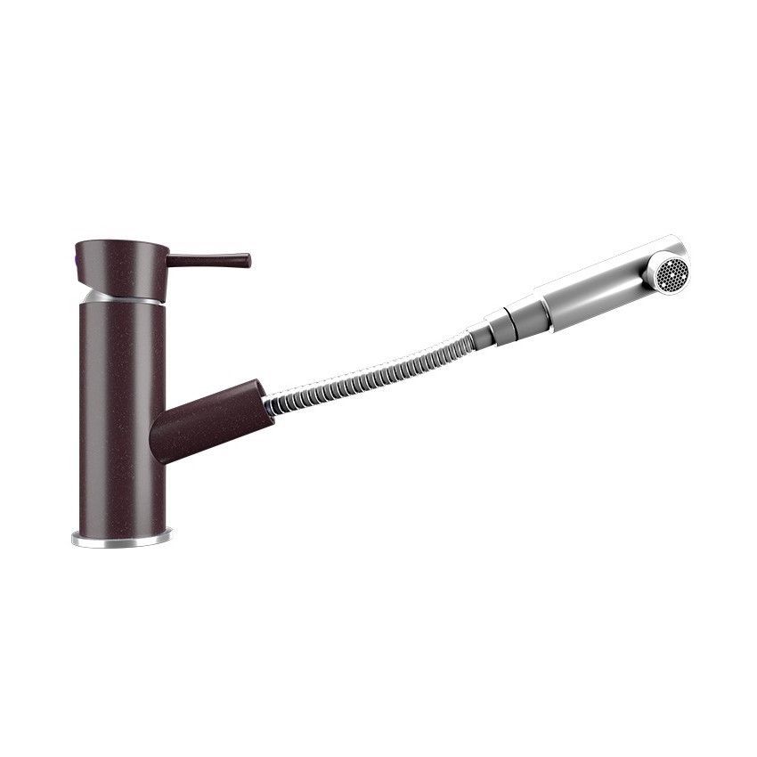 ULGRAN U-009 - кухонный смеситель с низким выдвижным изливом в виде металлической рукоятки (лейки). Конструкция излива с выдвижным механизмом специально разработана для удобства мытья труднодоступных мест и негабаритной посуды (кастрюлей и сковород любой конфигурации), не прибегая к дополнительным ухищрениям. Также это хорошее решение для больших кухонных моек и моек с двумя чашами (двойных). Материал корпуса выполнен из высококачественной латуни, а окрашивание под "искусственный камень" в цвет мойки ULGRAN выполняется на собственном производстве, что позволяет идеально попасть в фирменный цвет ULGRAN. В качестве керамического картриджа используется известный бренд Wanhai диаметром 35 мм с высокой пропускной способностью в 500 тысяч циклов "открывания-закрывания". На подвижные части картриджа Wanhai нанесена специальная невымываемая силиконовая смазка, а керамические пластины изготовлены из 96% оксида алюминия, что, в сочетании с высоким качеством шлифовки обеспечивает долговечность, надежность, плавность хода рукоятки. Смеситель оборудован съемным пластиковым аэратором для экономии воды и поворотным изливом на 360 градусов. В комплектацию входя: керамический картридж Wanhai, гибкая подводка 450 мм, комплект крепежных элементов, металлическая рукоятка (лейка), технический паспорт и гарантийный талон. Заводская гарантия составляет 3 года на материал корпуса, 1 год на комплектующие к смесителю и 1 год на материал покрытия.