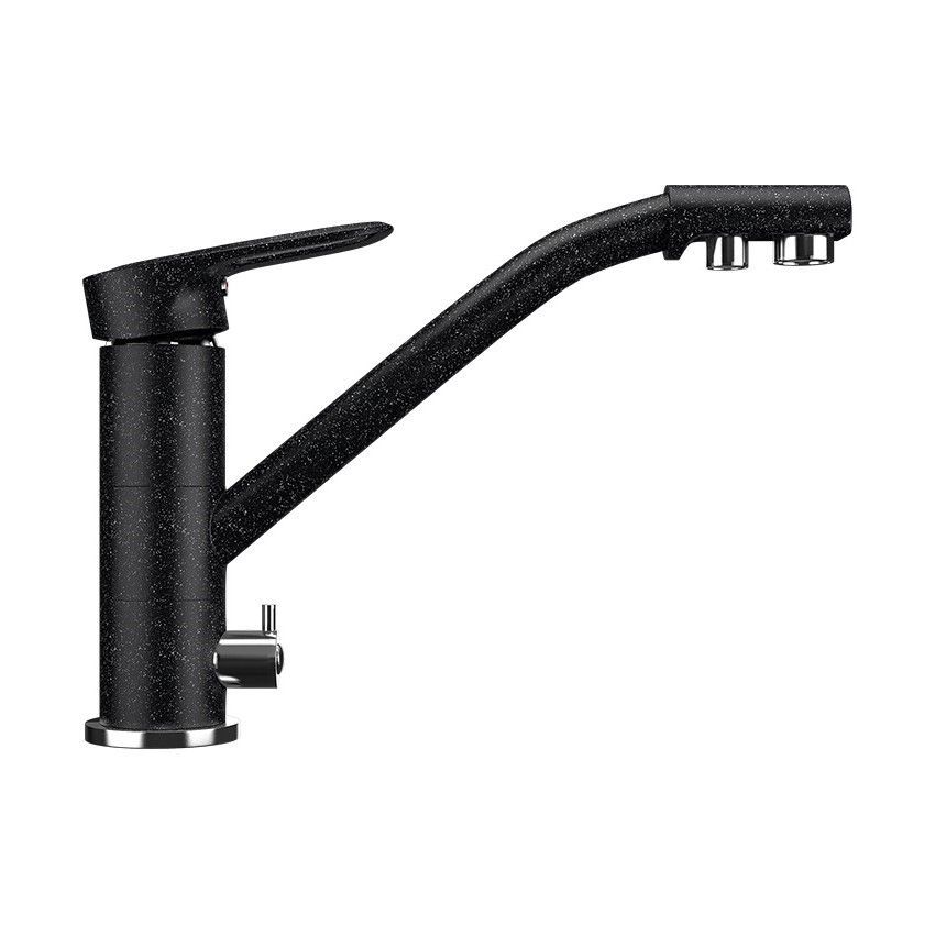ULGRAN U-010 - высокоэргономичный кухонный смеситель с дополнительным краном для подключения фильтрованной воды, оснащенный кран-буксой с керамическими пластинами. Реализован тройной подвод воды через один излив: холодная, горячая и фильтрованная. Переход с одного подвода на другой производится поворотом рычага. Набор для соединения с фильтром входит в комплект . Система фильтрации приобретается дополнительно и монтируется под мойку, специальный индикатор сообщает о необходимости замены картриджа. Материал корпуса выполнен из высококачественной латуни, а окрашивание под "искусственный камень" в цвет мойки ULGRAN выполняется на собственном производстве, что позволяет идеально попасть в фирменный цвет ULGRAN. В качестве керамического картриджа используется известный бренд Wanhai диаметром 35 мм с высокой пропускной способностью в 500 тысяч циклов "открывания-закрывания". На подвижные части картриджа Wanhai нанесена специальная невымываемая силиконовая смазка, а керамические пластины изготовлены из 96% оксида алюминия, что, в сочетании с высоким качеством шлифовки обеспечивает долговечность, надежность, плавность хода рукоятки. Смеситель оборудован съемным пластиковым аэратором для экономии воды и поворотным изливом на 360 градусов. В комплектацию входя: керамический картридж Wanhai, гибкая подводка, комплект крепежных элементов, кран-букса с керамическими пластинами для дополнительного излива для фильтрованной воды, набор для подсоединения фильтра питьевой воды (гибкая подводка + переходник-цанга), технический паспорт и гарантийный талон. Заводская гарантия составляет 3 года на материал корпуса, 1 год на комплектующие к смесителю и 1 год на материал покрытия.