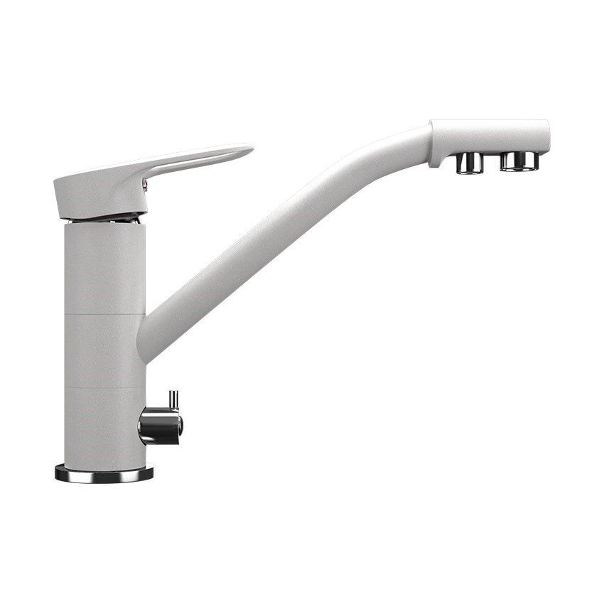 ULGRAN U-010 - высокоэргономичный кухонный смеситель с дополнительным краном для подключения фильтрованной воды, оснащенный кран-буксой с керамическими пластинами. Реализован тройной подвод воды через один излив: холодная, горячая и фильтрованная. Переход с одного подвода на другой производится поворотом рычага. Набор для соединения с фильтром входит в комплект . Система фильтрации приобретается дополнительно и монтируется под мойку, специальный индикатор сообщает о необходимости замены картриджа. Материал корпуса выполнен из высококачественной латуни, а окрашивание под "искусственный камень" в цвет мойки ULGRAN выполняется на собственном производстве, что позволяет идеально попасть в фирменный цвет ULGRAN. В качестве керамического картриджа используется известный бренд Wanhai диаметром 35 мм с высокой пропускной способностью в 500 тысяч циклов "открывания-закрывания". На подвижные части картриджа Wanhai нанесена специальная невымываемая силиконовая смазка, а керамические пластины изготовлены из 96% оксида алюминия, что, в сочетании с высоким качеством шлифовки обеспечивает долговечность, надежность, плавность хода рукоятки. Смеситель оборудован съемным пластиковым аэратором для экономии воды и поворотным изливом на 360 градусов. В комплектацию входя: керамический картридж Wanhai, гибкая подводка, комплект крепежных элементов, кран-букса с керамическими пластинами для дополнительного излива для фильтрованной воды, набор для подсоединения фильтра питьевой воды (гибкая подводка + переходник-цанга), технический паспорт и гарантийный талон. Заводская гарантия составляет 3 года на материал корпуса, 1 год на комплектующие к смесителю и 1 год на материал покрытия.