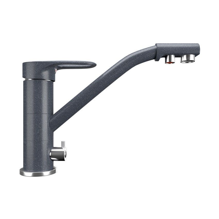 ULGRAN U-010 - высокоэргономичный кухонный смеситель с дополнительным краном для подключения фильтрованной воды, оснащенный кран-буксой с керамическими пластинами. Реализован тройной подвод воды через один излив: холодная, горячая и фильтрованная. Переход с одного подвода на другой производится поворотом рычага. Набор для соединения с фильтром входит в комплект . Система фильтрации приобретается дополнительно и монтируется под мойку, специальный индикатор сообщает о необходимости замены картриджа. Материал корпуса выполнен из высококачественной латуни, а окрашивание под "искусственный камень" в цвет мойки ULGRAN выполняется на собственном производстве, что позволяет идеально попасть в фирменный цвет ULGRAN. В качестве керамического картриджа используется известный бренд Wanhai диаметром 35 мм с высокой пропускной способностью в 500 тысяч циклов "открывания-закрывания". На подвижные части картриджа Wanhai нанесена специальная невымываемая силиконовая смазка, а керамические пластины изготовлены из 96% оксида алюминия, что, в сочетании с высоким качеством шлифовки обеспечивает долговечность, надежность, плавность хода рукоятки. Смеситель оборудован съемным пластиковым аэратором для экономии воды и поворотным изливом на 360 градусов. В комплектацию входя: керамический картридж Wanhai, гибкая подводка, комплект крепежных элементов, кран-букса с керамическими пластинами для дополнительного излива для фильтрованной воды, набор для подсоединения фильтра питьевой воды (гибкая подводка + переходник-цанга), технический паспорт и гарантийный талон. Заводская гарантия составляет 3 года на материал корпуса, 1 год на комплектующие к смесителю и 1 год на материал покрытия.