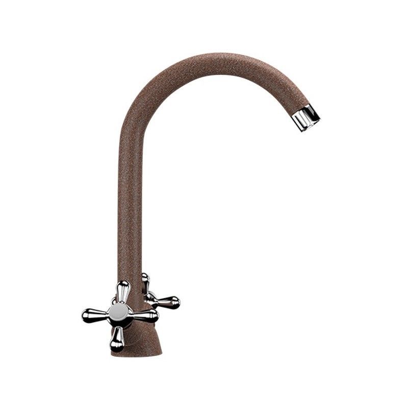 ULGRAN U-012 - классический кухонный двухрычажный смеситель с высоким поворотным изливом. Материал корпуса выполнен из высококачественной латуни, а окрашивание под "искусственный камень" в цвет мойки ULGRAN выполняется на собственном производстве, что позволяет идеально попасть в фирменный цвет ULGRAN. В качестве запорного клапана используется кран-букса с керамическими пластинами, на подвижные части которых нанесена специальная невымываемая силиконовая смазка. В свою очередь, сами керамические пластины изготовлены из 96% оксида алюминия, что, в сочетании с высоким качеством шлифовки обеспечивает долговечность, надежность, плавность хода рукоятки. Смеситель оборудован съемным пластиковым аэратором для экономии воды и поворотным изливом на 360 градусов. В комплектацию входят: кран-букса с керамическими пластинами, гибкая подводка 450 мм, комплект крепежных элементов, технический паспорт и гарантийный талон. Заводская гарантия составляет 3 года на материал корпуса, 1 год на комплектующие к смесителю и 1 год на материал покрытия.