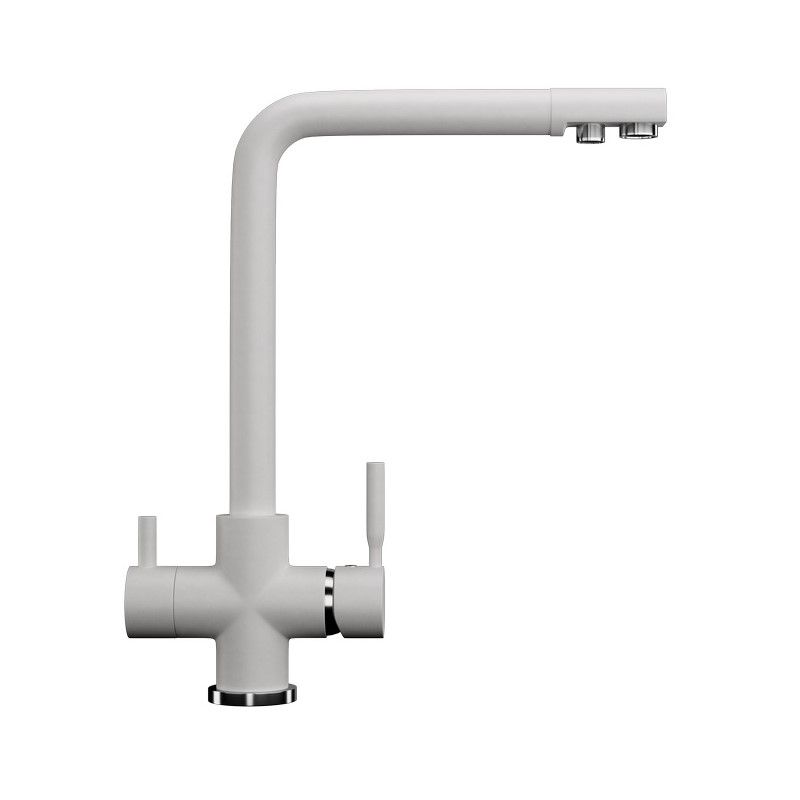 ULGRAN U-016 - высокоэргономичный кухонный смеситель с дополнительным краном для подключения фильтрованной воды, оснащенный кран-буксой с керамическими пластинами. Реализован тройной подвод воды через один излив: холодная, горячая и фильтрованная. Переход с одного подвода на другой производится поворотом рычага. Набор для соединения с фильтром входит в комплект . Система фильтрации приобретается дополнительно и монтируется под мойку, специальный индикатор сообщает о необходимости замены картриджа. Материал корпуса выполнен из высококачественной латуни, а окрашивание под "искусственный камень" в цвет мойки ULGRAN выполняется на собственном производстве, что позволяет идеально попасть в фирменный цвет ULGRAN. В качестве керамического картриджа используется известный бренд Wanhai диаметром 35 мм с высокой пропускной способностью в 500 тысяч циклов "открывания-закрывания". На подвижные части картриджа Wanhai нанесена специальная невымываемая силиконовая смазка, а керамические пластины изготовлены из 96% оксида алюминия, что, в сочетании с высоким качеством шлифовки обеспечивает долговечность, надежность, плавность хода рукоятки. Смеситель оборудован съемным пластиковым аэратором для экономии воды и поворотным изливом на 360 градусов. В комплектацию входят: керамический картридж Wanhai, гибкая подводка, комплект крепежных элементов, кран-букса с керамическими пластинами для дополнительного излива для фильтрованной воды, набор для подсоединения фильтра питьевой воды (гибкая подводка + переходник-цанга), технический паспорт и гарантийный талон. Заводская гарантия составляет 3 года на материал корпуса, 1 год на комплектующие к смесителю и 1 год на материал покрытия.