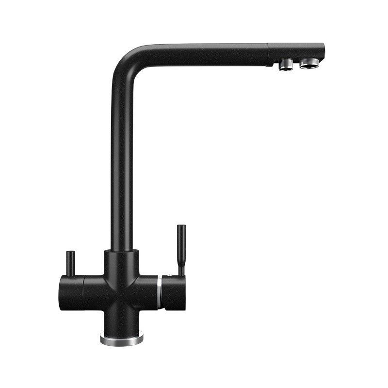 ULGRAN U-016 - высокоэргономичный кухонный смеситель с дополнительным краном для подключения фильтрованной воды, оснащенный кран-буксой с керамическими пластинами. Реализован тройной подвод воды через один излив: холодная, горячая и фильтрованная. Переход с одного подвода на другой производится поворотом рычага. Набор для соединения с фильтром входит в комплект . Система фильтрации приобретается дополнительно и монтируется под мойку, специальный индикатор сообщает о необходимости замены картриджа. Материал корпуса выполнен из высококачественной латуни, а окрашивание под "искусственный камень" в цвет мойки ULGRAN выполняется на собственном производстве, что позволяет идеально попасть в фирменный цвет ULGRAN. В качестве керамического картриджа используется известный бренд Wanhai диаметром 35 мм с высокой пропускной способностью в 500 тысяч циклов "открывания-закрывания".  На подвижные части картриджа  Wanhai  нанесена специальная невымываемая силиконовая смазка, а керамические пластины изготовлены из 96% оксида алюминия, что, в сочетании с высоким качеством шлифовки обеспечивает долговечность, надежность, плавность хода рукоятки.  Смеситель оборудован съемным пластиковым аэратором для экономии воды  и поворотным изливом на 360 градусов. В комплектацию входят:  керамический картридж  Wanhai, гибкая подводка, комплект крепежных элементов,  кран-букса с керамическими пластинами для дополнительного излива для фильтрованной воды, набор для подсоединения фильтра питьевой воды (гибкая подводка + переходник-цанга), технический паспорт и гарантийный талон. Заводская гарантия составляет 3 года на материал корпуса, 1 год на комплектующие к смесителю и 1 год на материал покрытия.