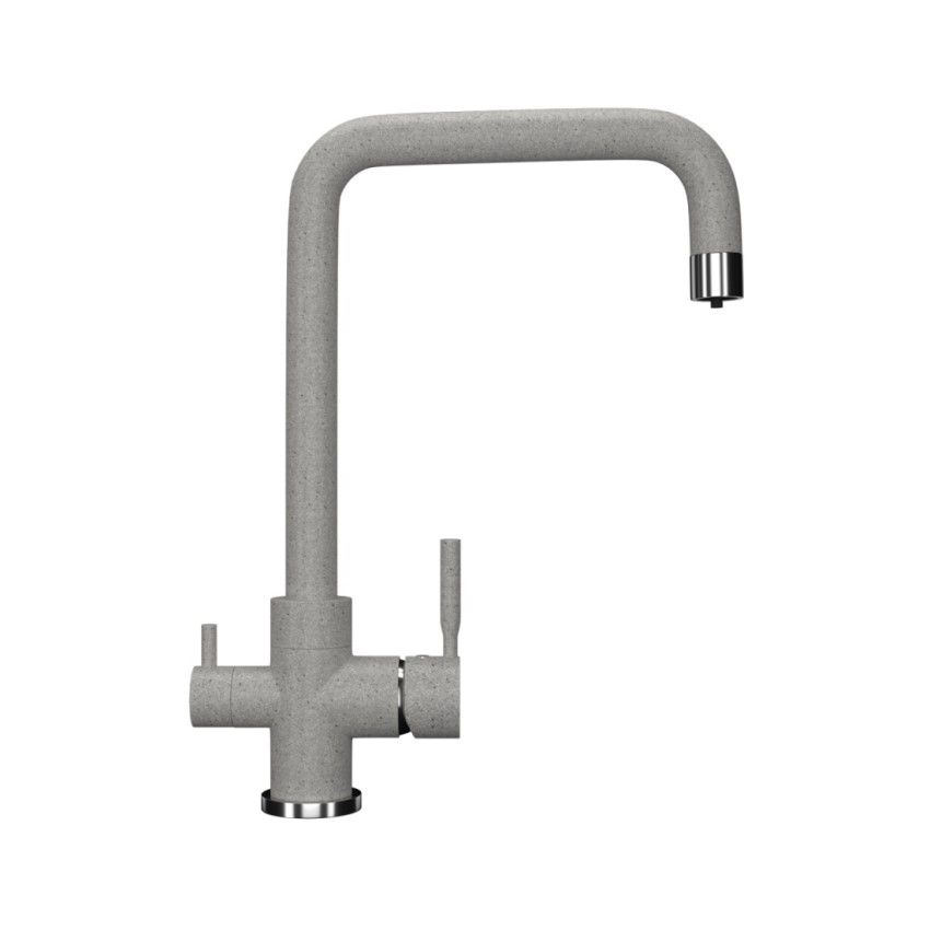 ULGRAN U-019 - современный кухонный смеситель с дополнительным краном для подключения фильтрованной воды, оснащенный кран-буксой с керамическими пластинами. Реализован тройной подвод воды через один излив: холодная, горячая и фильтрованная. Переход с одного подвода на другой производится поворотом рычага. Набор для соединения с фильтром входит в комплект . Система фильтрации приобретается дополнительно и монтируется под мойку, специальный индикатор сообщает о необходимости замены картриджа. Материал корпуса выполнен из высококачественной латуни, а окрашивание под "искусственный камень" в цвет мойки ULGRAN выполняется на собственном производстве, что позволяет идеально попасть в фирменный цвет ULGRAN. В качестве керамического картриджа используется известный бренд Wanhai диаметром 35 мм с высокой пропускной способностью в 500 тысяч циклов "открывания-закрывания". На подвижные части картриджа Wanhai нанесена специальная невымываемая силиконовая смазка, а керамические пластины изготовлены из 96% оксида алюминия, что, в сочетании с высоким качеством шлифовки обеспечивает долговечность, надежность, плавность хода рукоятки. Смеситель оборудован съемным пластиковым аэратором для экономии воды и поворотным изливом на 360 градусов. В комплектацию входя: керамический картридж Wanhai, гибкая подводка, комплект крепежных элементов, кран-букса с керамическими пластинами для дополнительного излива для фильтрованной воды, набор для подсоединения фильтра питьевой воды (гибкая подводка + переходник-цанга), технический паспорт и гарантийный талон. Заводская гарантия составляет 3 года на материал корпуса, 1 год на комплектующие к смесителю и 1 год на материал покрытия.