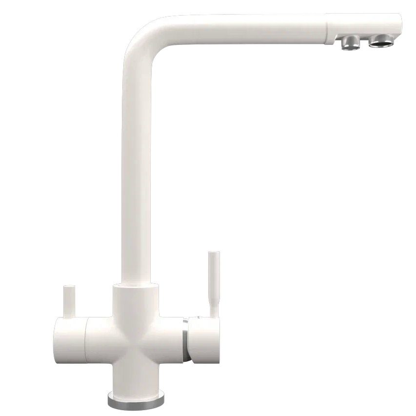 ULGRAN Quartz UQ-016 - высокоэргономичный кухонный смеситель с дополнительным краном для подключения фильтрованной воды, оснащенный кран-буксой с керамическими пластинами. Реализован тройной подвод воды через один излив: холодная, горячая и фильтрованная. Переход с одного подвода на другой производится поворотом рычага. Набор для соединения с фильтром входит в комплект . Система фильтрации приобретается дополнительно и монтируется под мойку, специальный индикатор сообщает о необходимости замены картриджа. Материал корпуса выполнен из высококачественной латуни, а окрашивание под "искусственный камень" в цвет мойки ULGRAN Quart выполняется на собственном производстве, что позволяет идеально попасть в фирменный цвет ULGRAN Quart. В качестве керамического картриджа используется известный бренд Wanhai диаметром 35 мм с высокой пропускной способностью в 500 тысяч циклов "открывания-закрывания". На подвижные части картриджа Wanhai нанесена специальная невымываемая силиконовая смазка, а керамические пластины изготовлены из 96% оксида алюминия, что, в сочетании с высоким качеством шлифовки обеспечивает долговечность, надежность, плавность хода рукоятки. Смеситель оборудован съемным пластиковым аэратором для экономии воды и поворотным изливом на 360 градусов. В комплектацию входят: керамический картридж Wanhai, гибкая подводка, комплект крепежных элементов, кран-букса с керамическими пластинами для дополнительного излива для фильтрованной воды, набор для подсоединения фильтра питьевой воды (гибкая подводка + переходник-цанга), технический паспорт и гарантийный талон. Заводская гарантия составляет 3 года на материал корпуса, 1 год на комплектующие к смесителю и 1 год на материал покрытия.