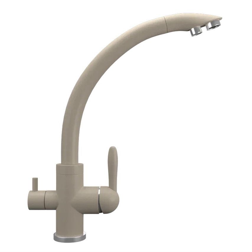 ULGRAN Quartz UQ-017 - современный кухонный смеситель с дополнительным краном для подключения фильтрованной воды, оснащенный кран-буксой с керамическими пластинами. Реализован тройной подвод воды через один излив: холодная, горячая и фильтрованная. Переход с одного подвода на другой производится поворотом рычага. Набор для соединения с фильтром входит в комплект . Система фильтрации приобретается дополнительно и монтируется под мойку, специальный индикатор сообщает о необходимости замены картриджа. Материал корпуса выполнен из высококачественной латуни, а окрашивание под "искусственный камень" в цвет мойки ULGRAN Quartz выполняется на собственном производстве, что позволяет идеально попасть в фирменный цветULGRAN Quartz. В качестве керамического картриджа используется известный бренд Wanhai диаметром 35 мм с высокой пропускной способностью в 500 тысяч циклов "открывания-закрывания". На подвижные части картриджа Wanhai нанесена специальная невымываемая силиконовая смазка, а керамические пластины изготовлены из 96% оксида алюминия, что, в сочетании с высоким качеством шлифовки обеспечивает долговечность, надежность, плавность хода рукоятки. Смеситель оборудован съемным пластиковым аэратором для экономии воды и поворотным изливом на 360 градусов. В комплектацию входя: керамический картридж Wanhai, гибкая подводка, комплект крепежных элементов, кран-букса с керамическими пластинами для дополнительного излива для фильтрованной воды, набор для подсоединения фильтра питьевой воды (гибкая подводка + переходник-цанга), технический паспорт и гарантийный талон. Заводская гарантия составляет 3 года на материал корпуса, 1 год на комплектующие к смесителю и 1 год на материал покрытия.