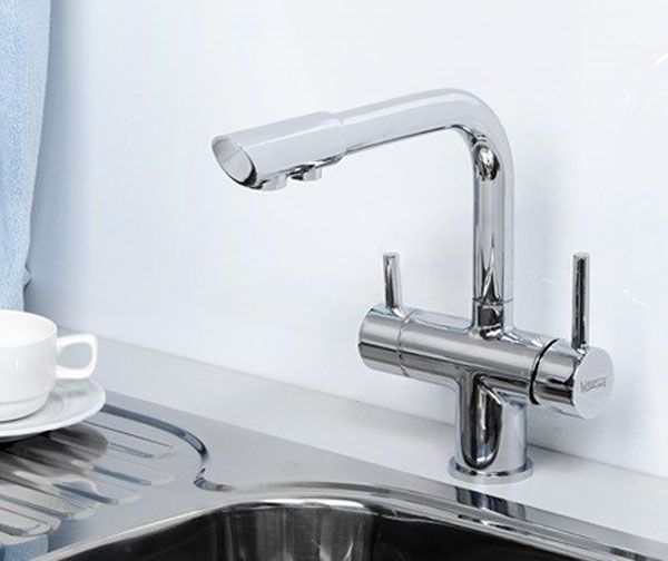Двухрычажный смеситель с поворотным изливом, аэратором и подключением к фильтру с питьевой водой. Имеет долгий срок эксплуатации за счет качественных деталей, неприхотлив в уходе. Дополнит любую ванную комнату своей функциональностью и стильной формой конструкции.