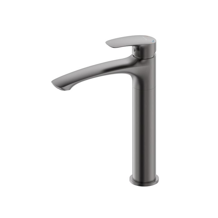 Смеситель для умывальника Rora отличается универсальным характером: основной акцент в его дизайне приходится на плавные линии корпуса и трендовый цвет. Модель в графитовом цвете одинаково выигрышно смотрится на контрастных белоснежных раковинах и дополняет собой керамику темных оттенков. Высокий смеситель (290 мм) подходит для установки с накладными раковинами-чашами. В комплекте гибкая подводка и крепеж.