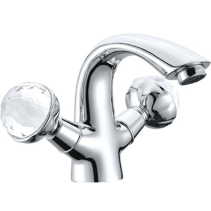 Смеситель для раковины Boheme Brillante Presente 351 декорирован круглыми кристаллами Swarovski. Роскошный дизайн дополнит интерьеры ванных комнат в богемном классическом или ретро-стиле.