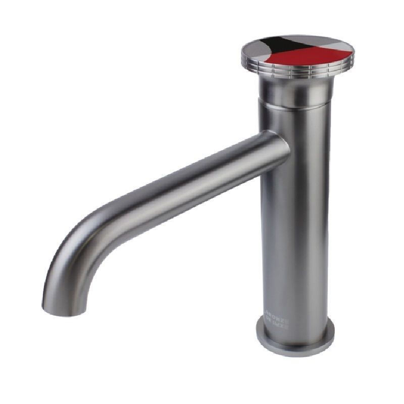 Смеситель для раковины Bronze de Luxe 9009GM-R, графит/красный. Управление: рычажное. Поверхность: матовая. Монтаж: на раковину. Длина излива, см: 16,7.