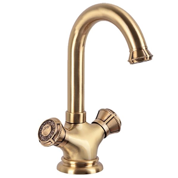- Корпус смесителя изготовлен из качественного латунного сплава. Тщательное патинирование придает изделию великолепный блеск и цвет.