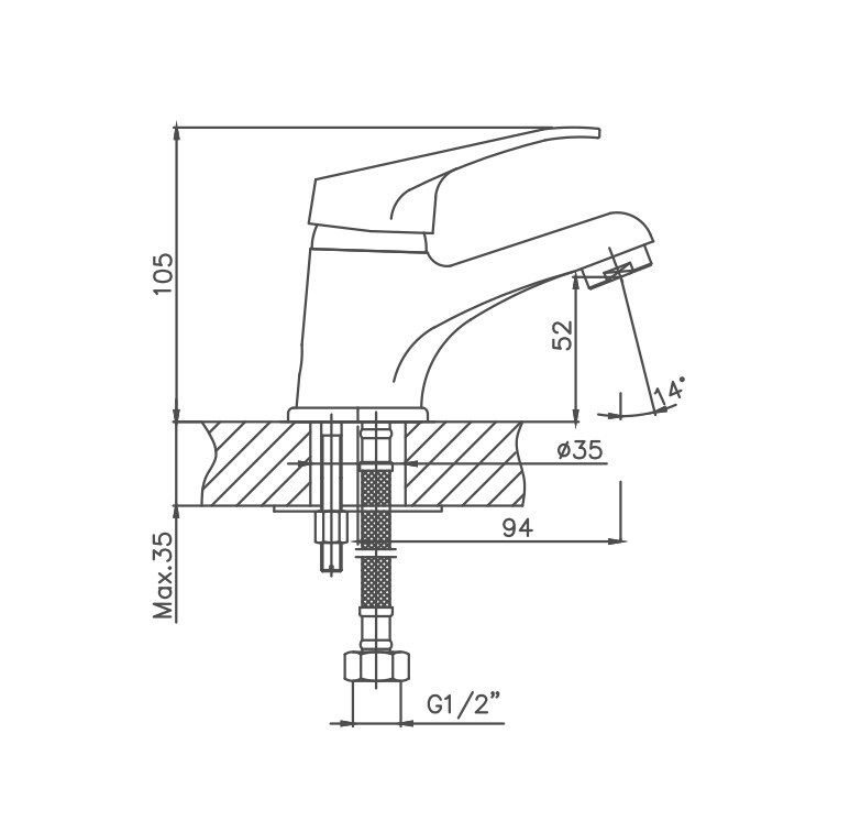 Керамический картридж 35 мм. Изготовлен из металлического сплава. Изменение угла аэратора на 14 градусов. Максимальная глубина монтажа 35 мм. Диаметр монтажного отверстия 35 мм. Цвет хром.