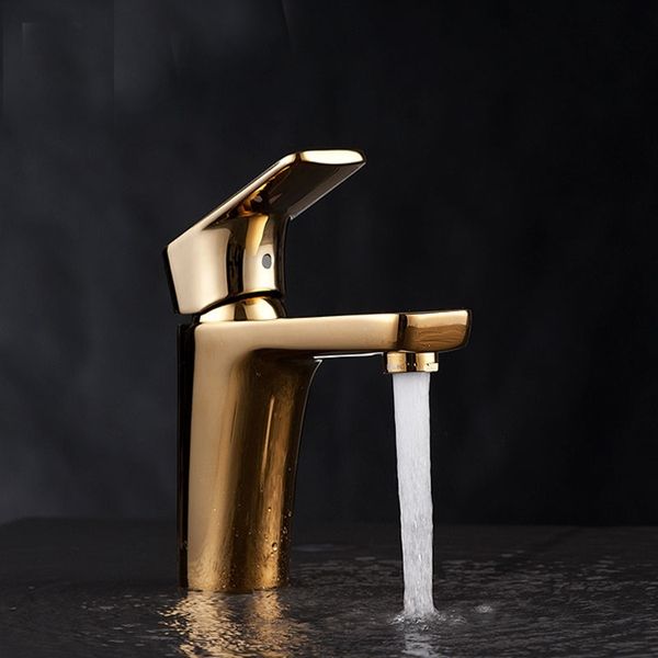Смеситель для раковины D&K Berlin Touro DA1432103 золото, однорычажный, на одно отверстия для монтажа.
