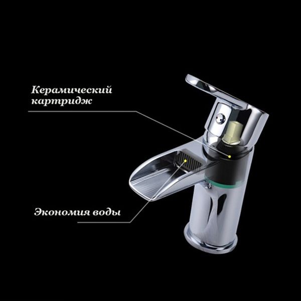 Смеситель для раковины D&K Marx Rhein DA1392801 однорычажный, с каскадным изливом, на одно отверстие для монтажа.