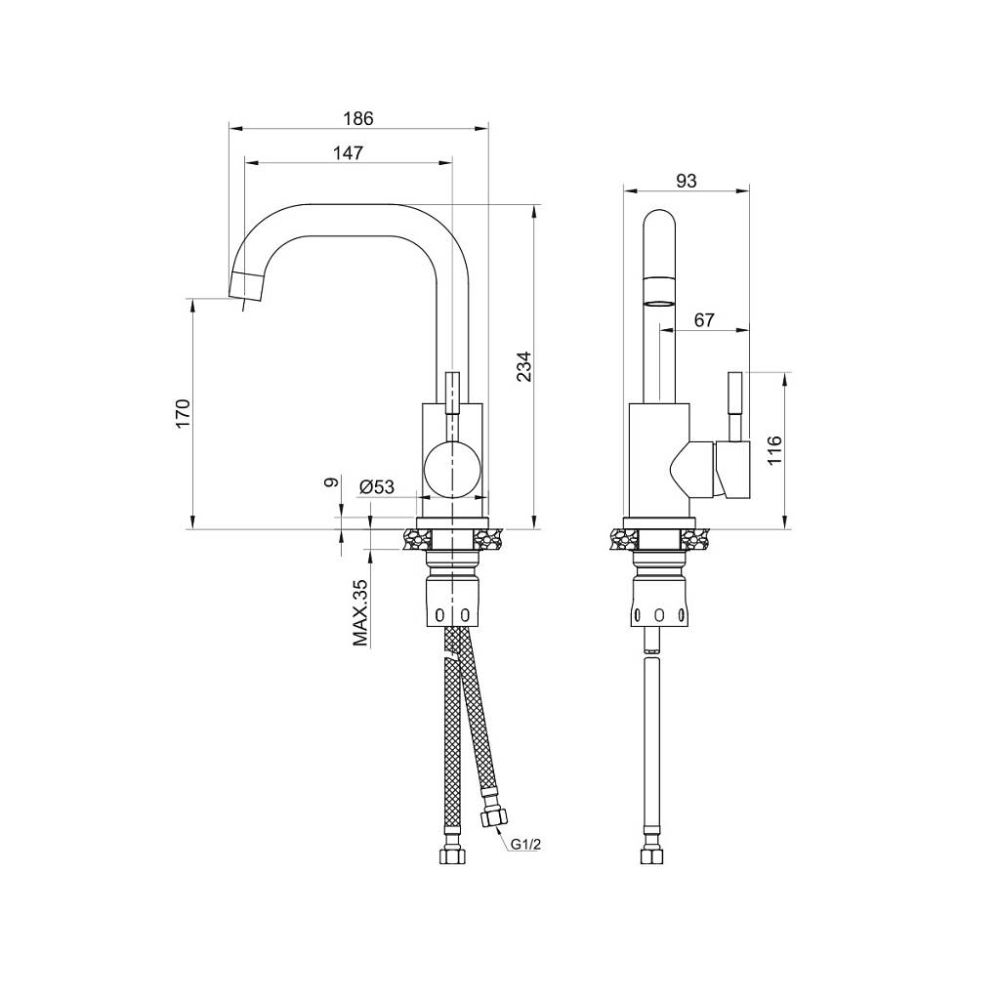 смеситель, гибкая подводка, крепежные элементы |