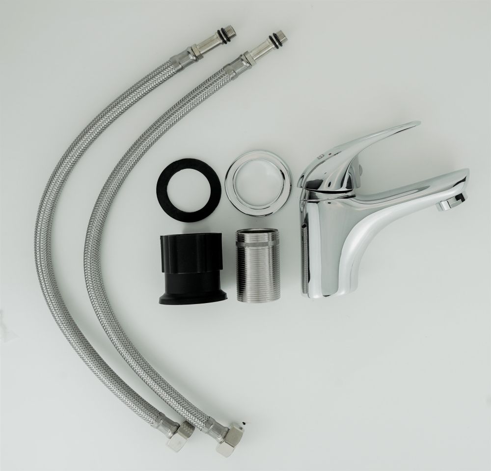 Корпус: латунь кат.A Картридж: универсальный ESKO, 35мм Комплектация: пьедестал, крепление "FastFix",гибкая подводка 40см.