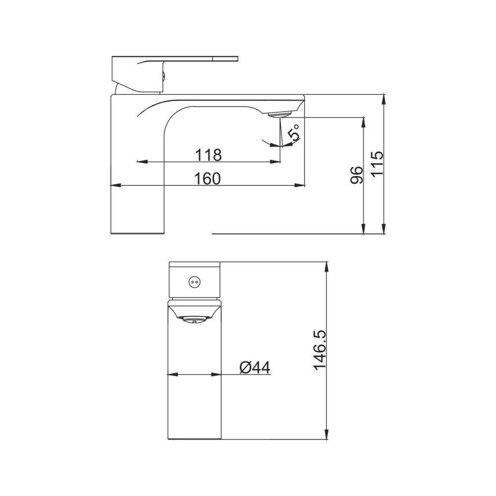 смеситель для умывальника с регулируемым аэратором, H=147 мм