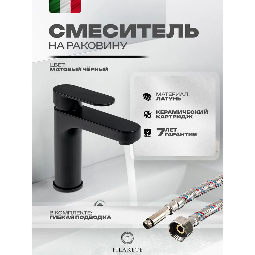 Смеситель для раковины FILARETE Retta FL5030BL, черный. Гарантийный срок: 7 лет. Управление: рычажное. Стилистика дизайна: современный стиль. Материал: латунь. Монтаж: на раковину.