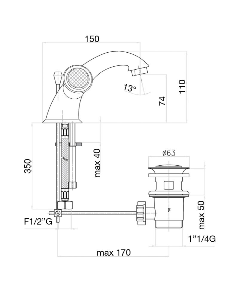 смеситель, донный клапан, подводка |