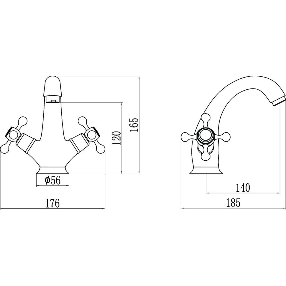 Смеситель для раковины Fmark FM1019, хром. Управление: вентильное. Поверхность: глянцевая. Материал: цинк. Вращение излива: фиксированный. Гарантийный срок: 3 года