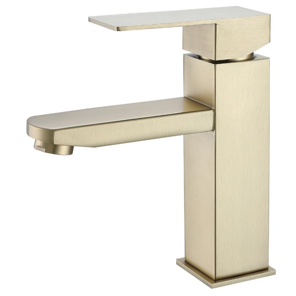 Смеситель для раковины Fmark FS8101C, матовое золото. Управление: рычажное. Поверхность: матовая. Материал: нержавеющая сталь. Вращение излива: фиксированный. Гарантийный срок: 5 лет