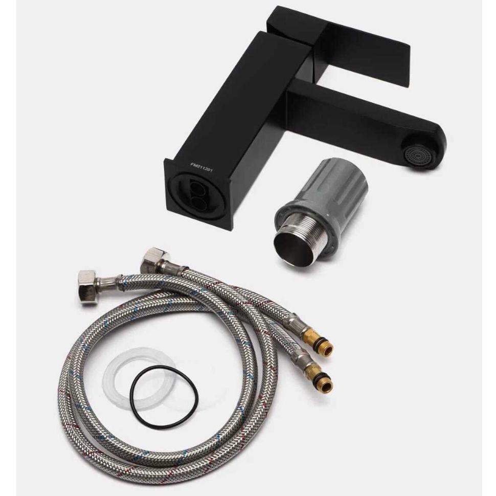 Смеситель для раковины Fmark FS8101H, черный. Управление: рычажное. Поверхность: матовая. Материал: нержавеющая сталь. Вращение излива: фиксированный. Гарантийный срок: 5 лет