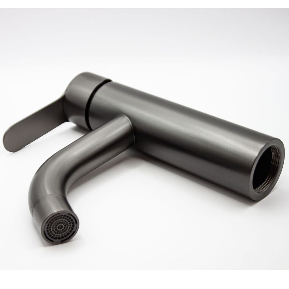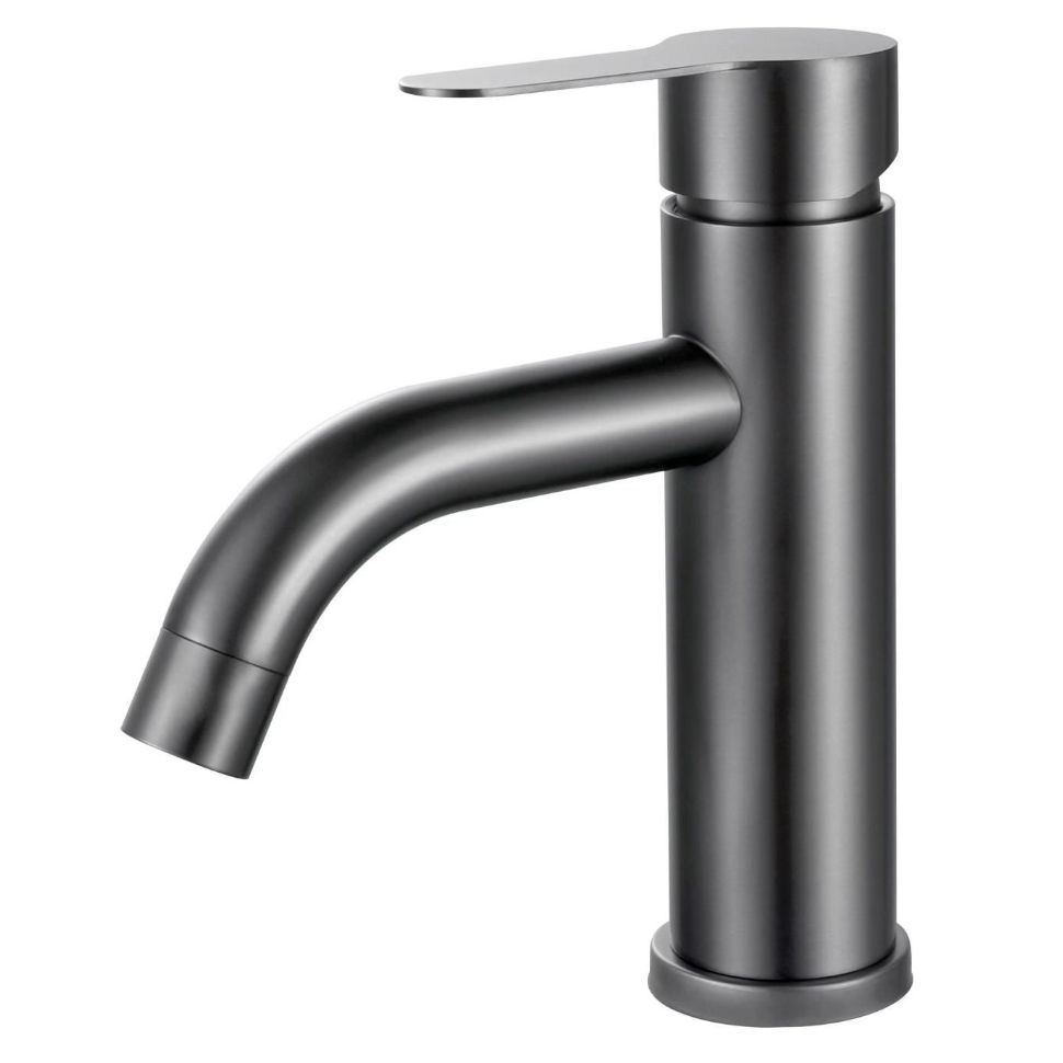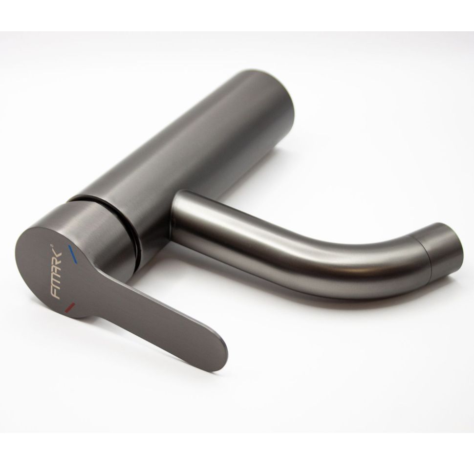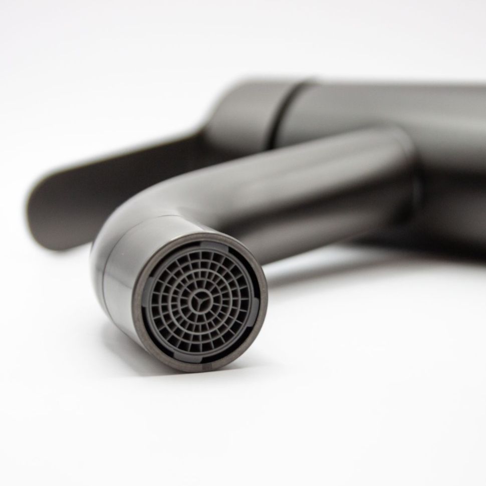 Смеситель для раковины Fmark FS8201Q, графит. Управление: рычажное. Поверхность: матовая. Материал: нержавеющая сталь. Вращение излива: фиксированный. Гарантийный срок: 5 лет