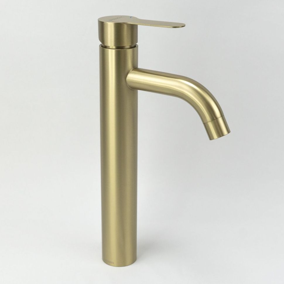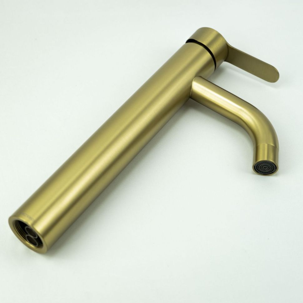 Смеситель для раковины Fmark FS8211C, матовое золото. Управление: рычажное. Поверхность: глянцевая. Материал: нержавеющая сталь. Вращение излива: фиксированный. Гарантийный срок: 5 лет