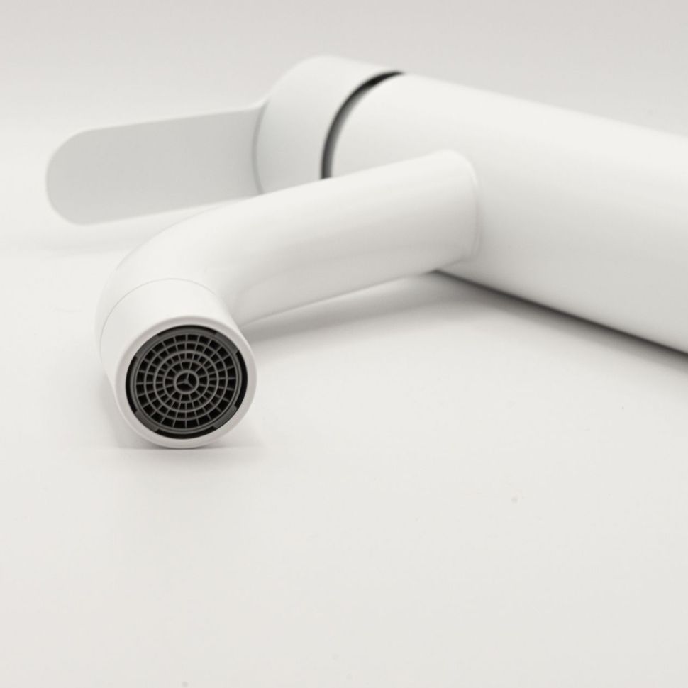 Смеситель для раковины Fmark FS8211W. Управление: рычажное. Поверхность: глянцевая. Материал: нержавеющая сталь. Вращение излива: фиксированный. Гарантийный срок: 5 лет