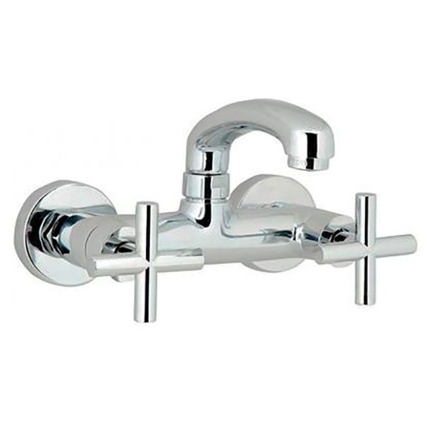 Смеситель с поворотным изливом и двумя вентилями. Монтируется на стену в 2 отверстия. Качественные материалы, которые использовались в производстве смесителя, обеспечивают долговечность и исправную работу на протяжении всего срока службы. Современный дизайн подойдет практически для любого интерьера ванной комнаты. Приятные тактильные ощущения обеспечиваются за счет полированной поверхности смесителя.