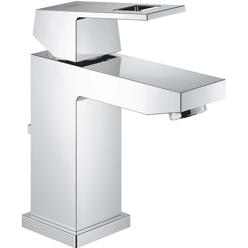 Однорычажный смеситель для раковины Grohe Eurocube 23127000 с фиксированным изливом, аэратором и донным клапаном.