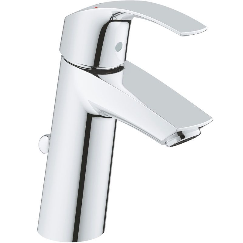 Однорычажный смеситель для раковины Grohe Eurosmart 23322001 с фиксированным изливом, аэратором и донным клапаном.