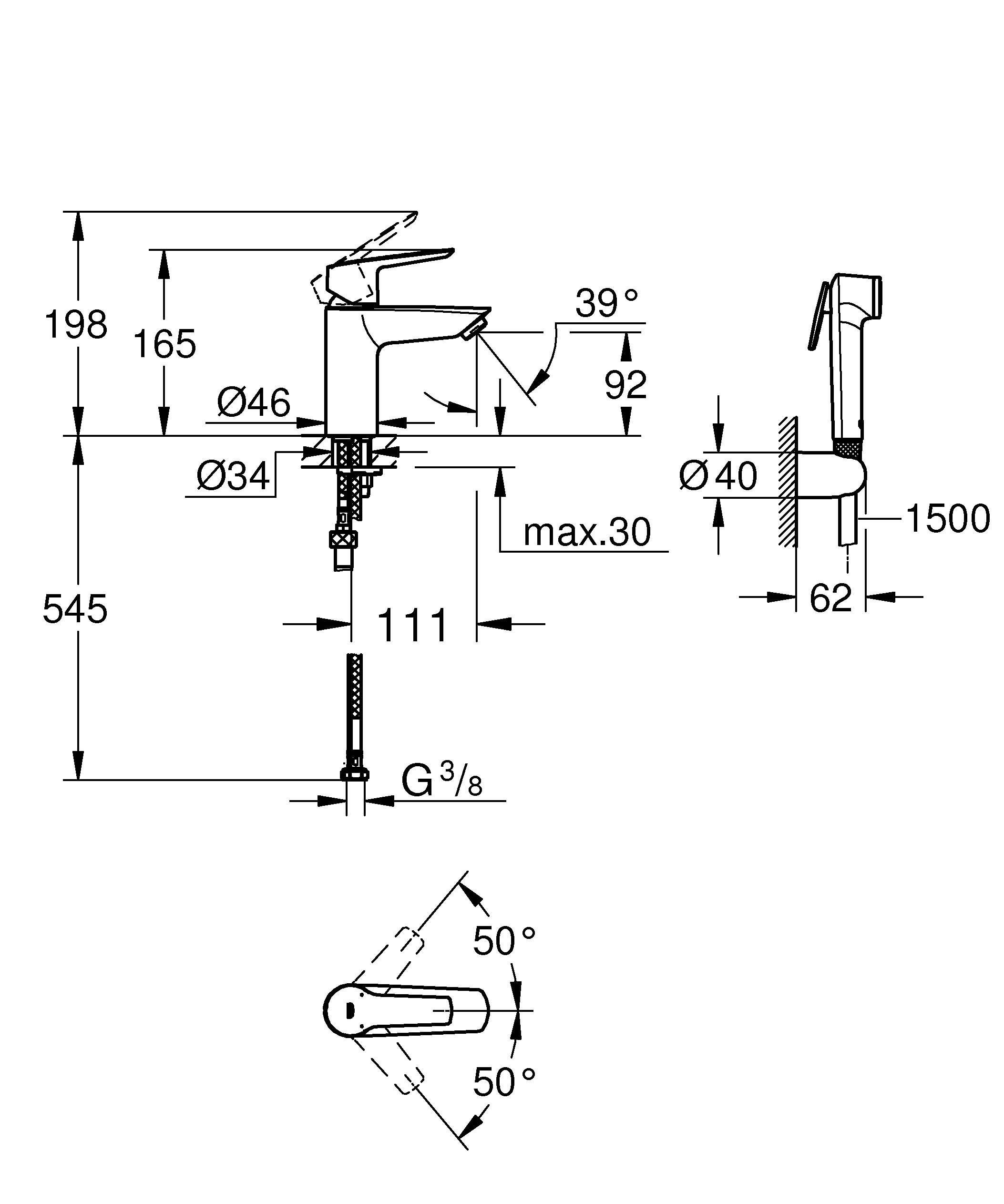 гибкая подводка, держатель для душа, душевая лейка, керамический картридж GROHE SilkMove, поверхность GROHE StarLight, шланг для душа |