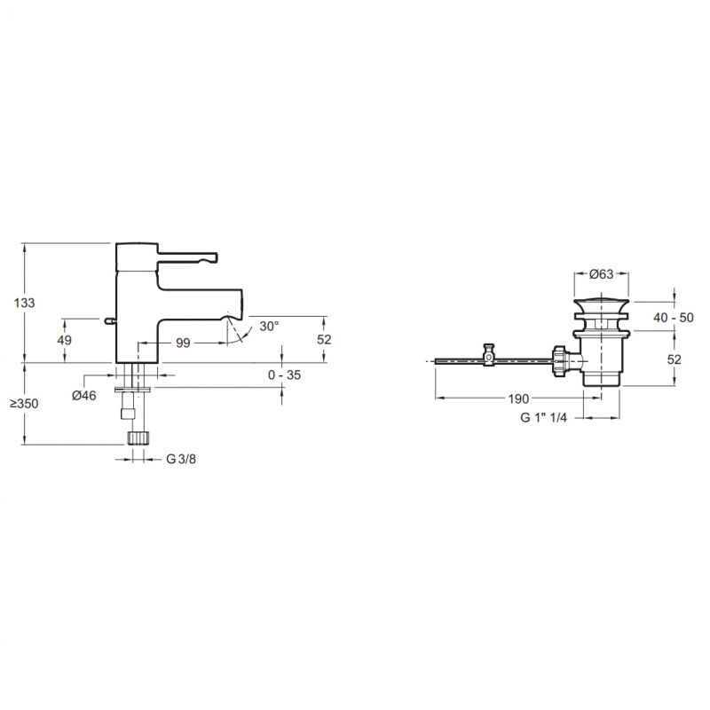 - Донный клапан с боковым рычагом.