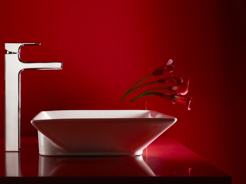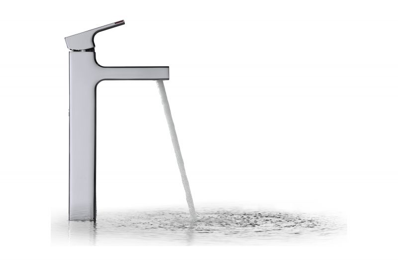 - Высокий смеситель для раковины и раковины-чаши Jacob Delafon Strayt E98340-CP однорычажный, с аэратором, монтируемый в одно отверстие.