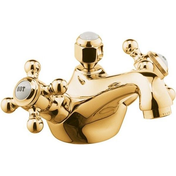 Смеситель для раковины Kludi Adlon 510124520 с донным клапаном. Цвет: золото.