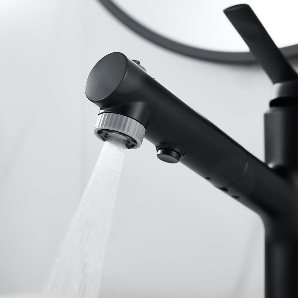 Одной из главных особенностей этого смесителя является выдвижной излив, который позволяет использовать различные режимы подачи воды: стандартный режим для повседневного использования, режим «душ» и режим «фонтан», где струя воды направлена вверх.